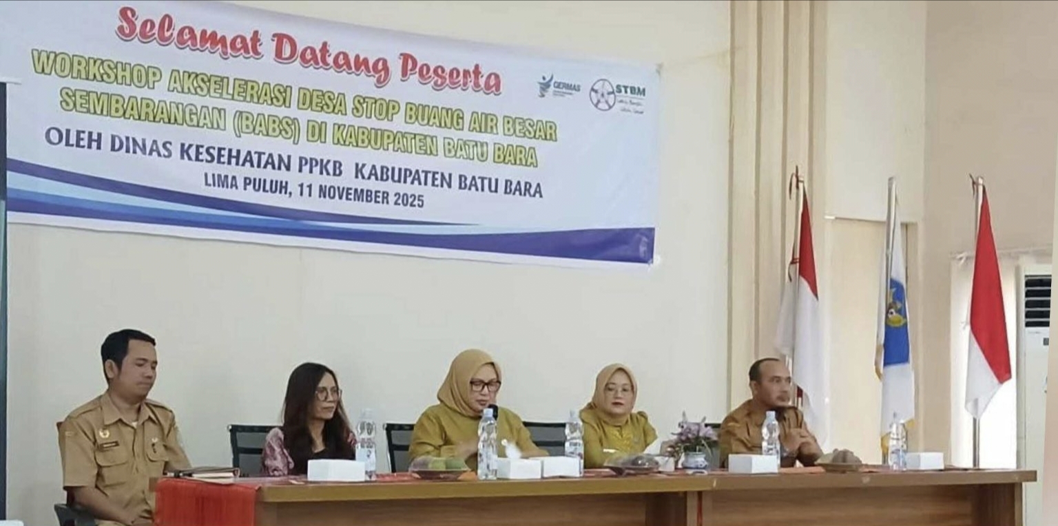 KoranSumut.id – BATUBARA : Dinas Kesehatan PPKB Batu Bara melaksanakan kegiatan Workshop Akselerasi Desa Stop Buang Air Besar Sembarangan (BABS) di Aula Dinkes PPKB Batu Bara Kecamatan Lima Puluh, Kabupaten Batu Bara. Selasa, (11/11/25).
