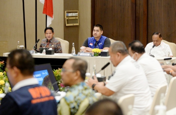Keterangan : Penjabat Gubernur Sumatera Utara, Hassanudin bersama Menteri Pemuda dan Olahraga, Dito Ariotedjo, pada rapat persiapan PON XXI Sumut-Aceh di Hotel Aula Hotel Santika, Kota Medan, Sumatera Utara. Jumat, (17/05/24).