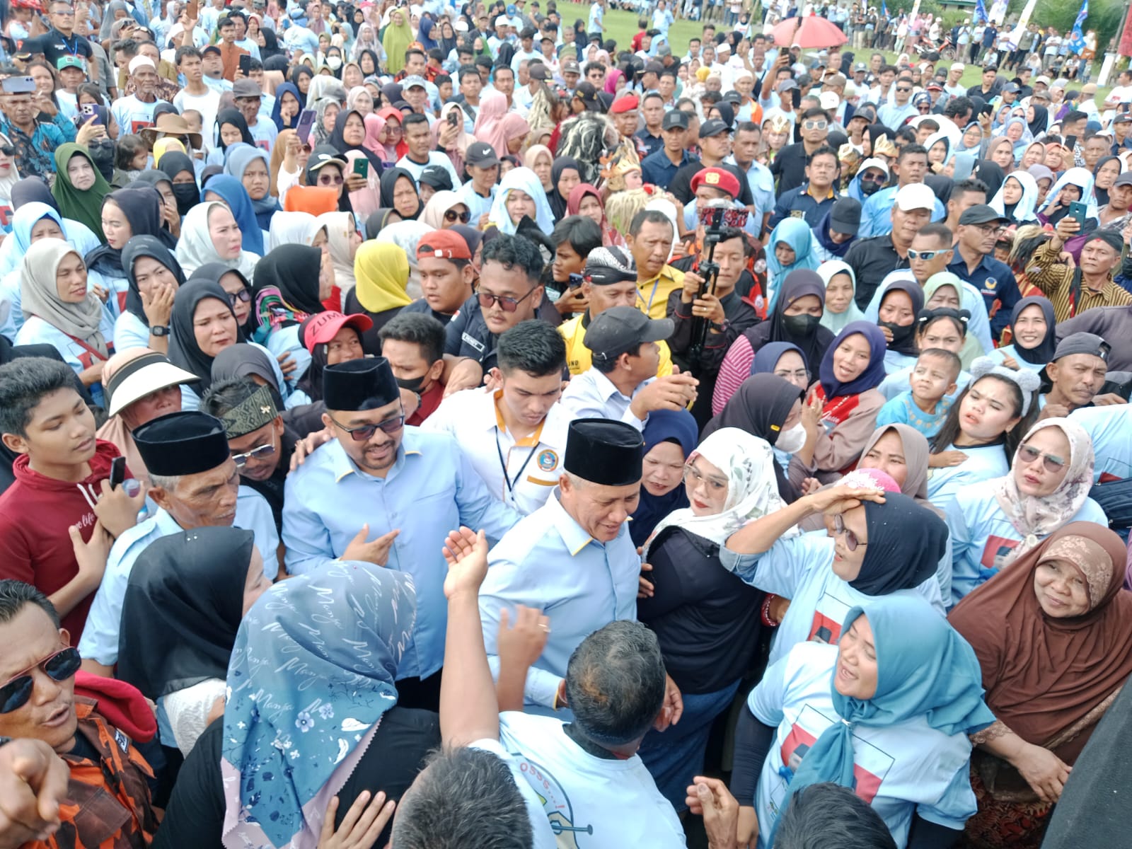 Pantauan KoranSumut, sejak siang hari sekitar pukul 12.00 Wib massa mulai membanjiri area lapangan Labuhan Ruku, menanti orasi politik dari Paslon nomor urut 1, Darwis – Oky.