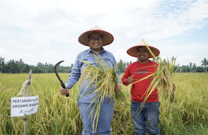 Bersama kelompok masyarakat binaannya, INALUM melaksanakan panen padi hasil penerapan Metode Tani Nusantara (MTN) di lahan uji coba seluas ±1.000 meter persegi.