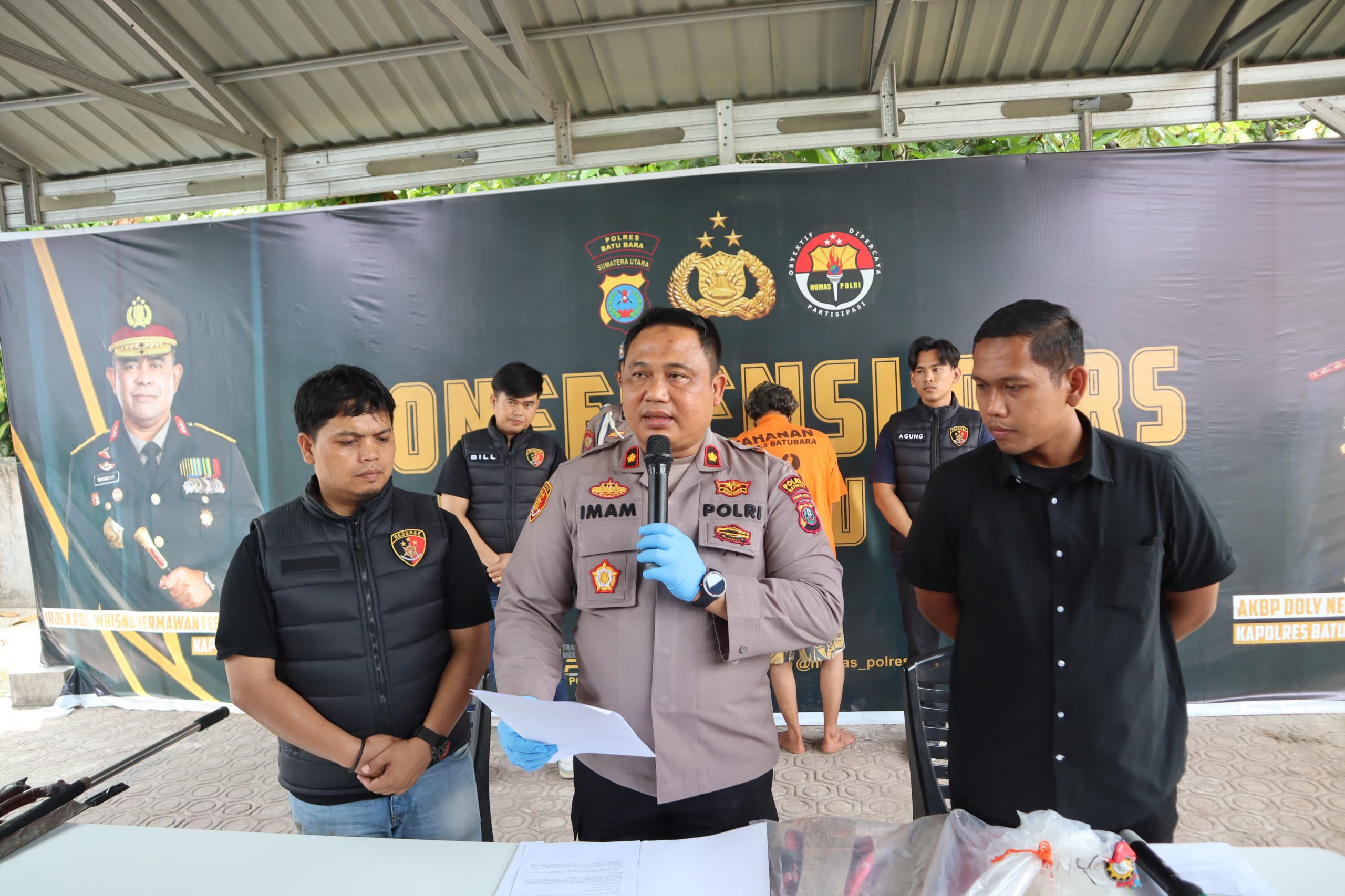 Konferensi Pers berlangsung di halaman utama Polres Batu Bara, Kecamatan Lima Puluh. Sumatera Utara. Selasa, (20/5/25).