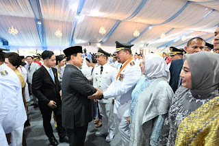 Dalam arahannya, Presiden RI Prabowo Subianto mengucapkan selamat atas pelantikan kepala daerah dan selamat atas mandat yang diberikan oleh rakyat dari daerah masing masing.